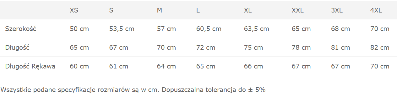 Rozmiary: XS – 3XL .